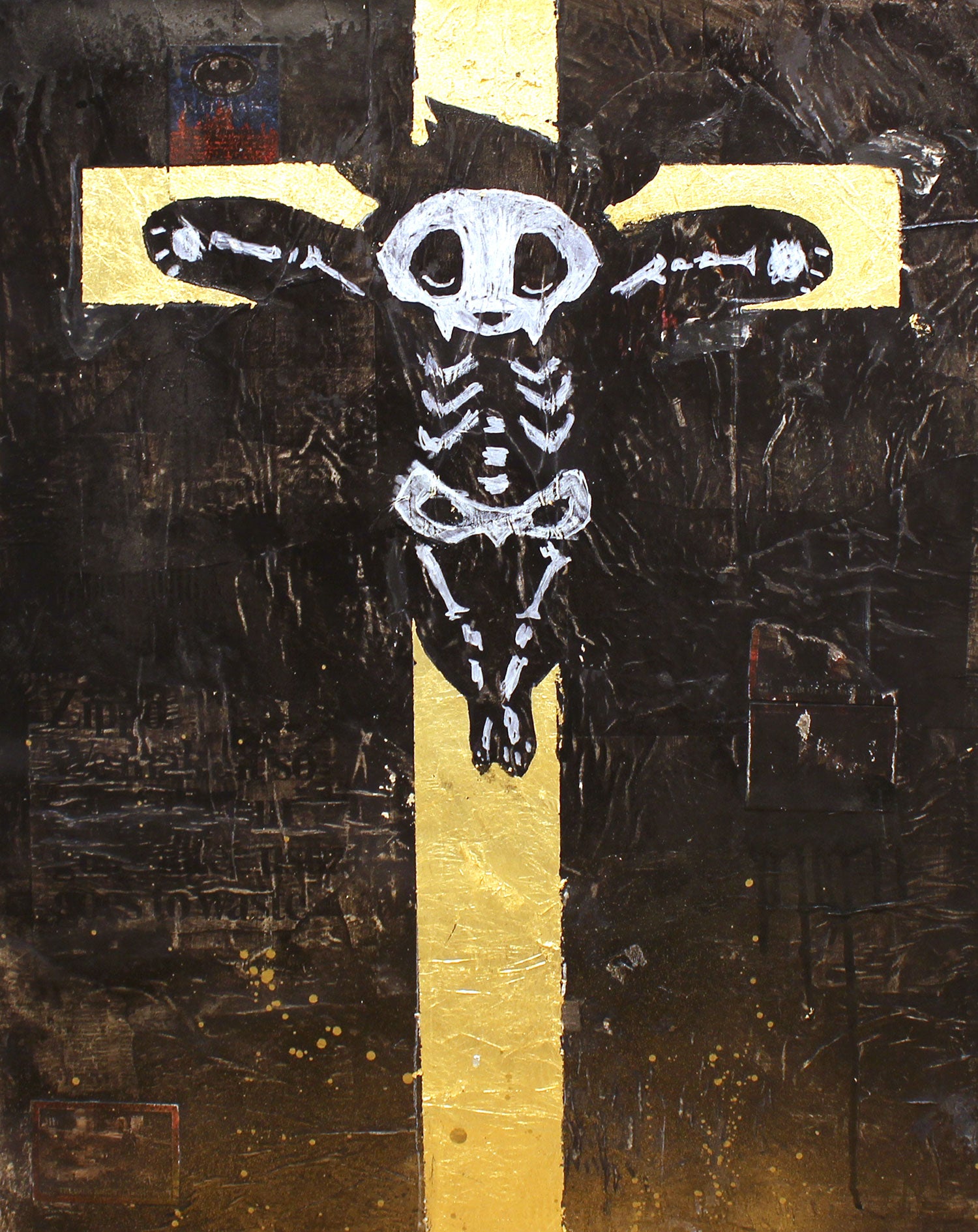 Acrylic, Spray Paint, Collage, Oil Pastel, Gold Leaf, Canvas